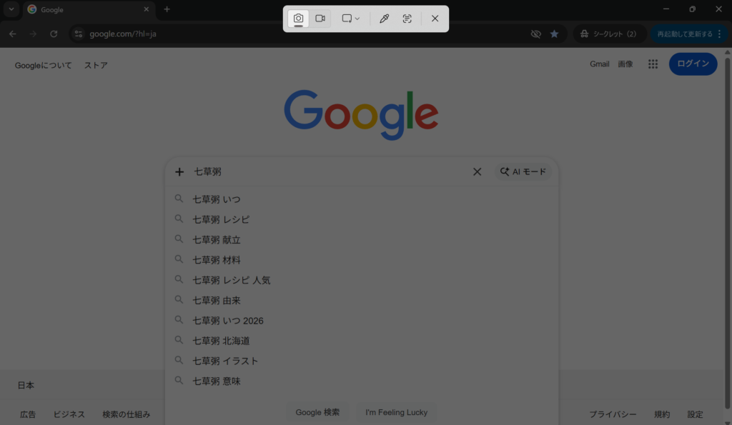 普段の検索履歴の影響を減らすために、できればシークレットモードがおすすめです。